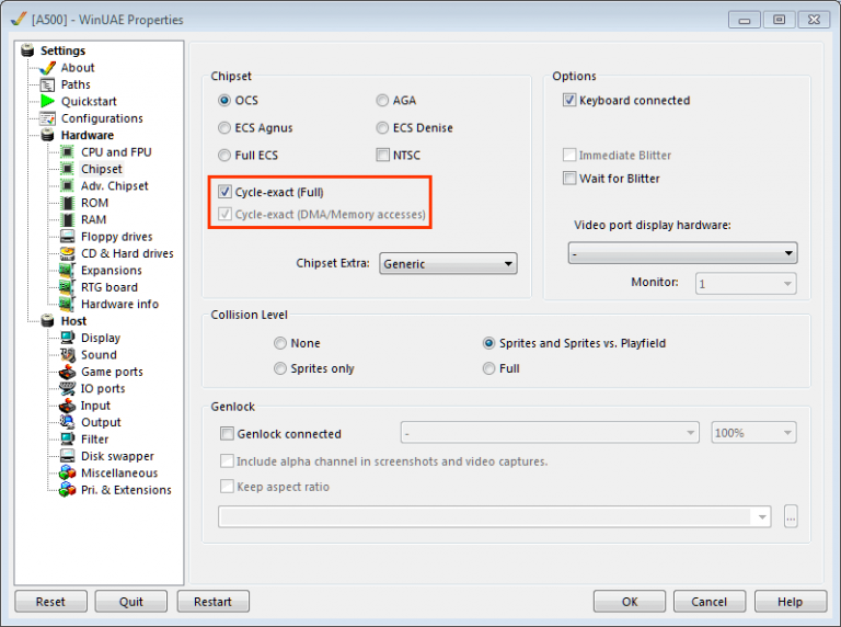 Créons alors une émulation d'Amiga 500 - nous aurons besoin du Kickstart 1.3. La chose faite, insérons la disquette dans le lecteur DF0: et démarrons la simulation en cliquant sur Reset. Le sine scroll se lance automatiquement.